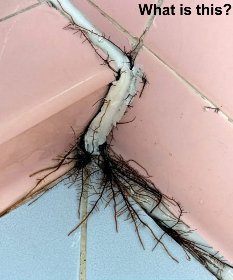 Those thin, hair-like strands we saw weren’t random growth or contamination. They were feeder roots, slowly extending and spreading as they explored the environment inside the wall or beneath the tile.