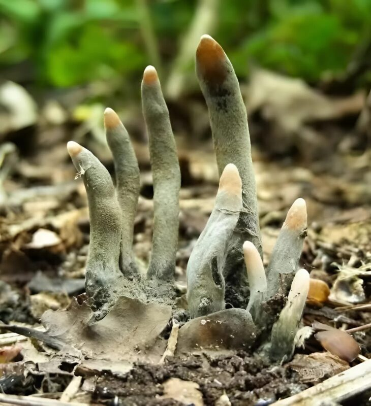 He explained that when these fungi are young, they have a bluish-gray color with pale tips that look like fingernails . Over time, they darken and can look almost black, which makes them eerily like fingers poking out of the earth. They grow on decaying wood and are completely harmless—no one’s going to eat them .