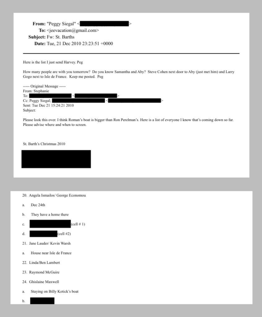 Lutnick said during a podcast interview last year that he cut ties with Epstein in the mid-2000s, saying he found him “disgusting” after visiting his New York City home and observing a massage table in the middle of a main room. “I was never in the room with him socially, for business, or even philanthropy. If that guy was there, I wasn’t going, cause he’s gross,” Lutnick said at the time. When reached by the New York Times this week, Lutnick said “I spent zero time with him.” Other names of prominent men in Trump’s orbit include director Brett Ratner, who led first lady Melania Trump’s newly released documentary, and Kevin Warsh, Trump’s new pick to lead the Federal Reserve. Ratner is mentioned in several emails, including one in 2018 in which it seems his and Epstein’s assistants or acquaintances are trying to connect them. Warsh and his wife Jane Lauder appear in a list shared with Epstein titled “St. Barth’s Christmas 2010,” among other guests who were planning to attend a party on the island.