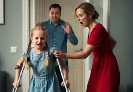 “You useless little thing!” she snarled, kicking away one of Elara’s crutches. Elara stumbled, nearly falling, her small hands desperately grasping for balance. “You spilled juice everywhere! Can’t you do anything right?”