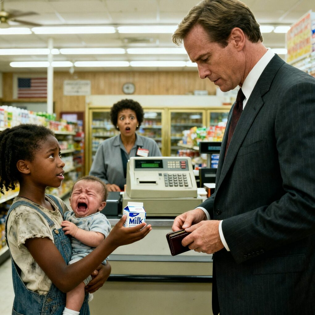 Keisha approached slowly, clutching her brother tighter. “Sir,” she said, her voice barely above a whisper, “my baby brother is crying. We don’t have milk. Could I please have one box? I’ll repay you when I grow up.”