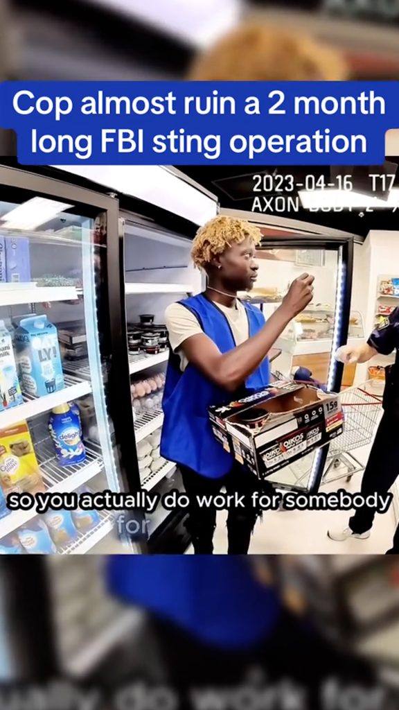 Foster doubles down — he says he’s been on the job for six months — but the other employees aren’t convinced. They want ID, a supervisor, anything that proves he belongs behind the shelf. The disagreement escalates into finger-pointing, accusations and weirdly personal lines like, “You look a little Caribbean or something.” (Which… yeah. Awkward.)