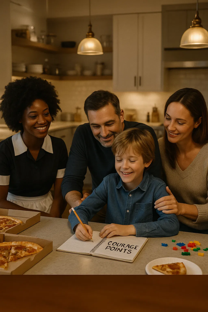 Richard stood outside Oliver’s door a moment after she left, watching the slow rise and fall of his son’s breathing. On the nightstand sat the Courage Points notebook. On the last page, a new line had been added in Oliver’s careful scrawl: