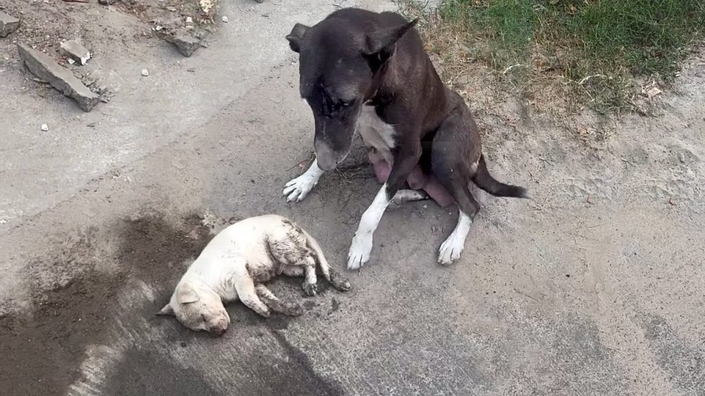 Three long days passed, and Ellie remained there, caught in trauma and unable to help herself. She was fragile, weak, and hurting, but what made the sight even more devastating was not just her own suffering—it was the presence of her mother. The devoted mother dog never left her daughter’s side. She stayed by the roadside, her eyes filled with desperation, watching each passerby with a silent plea. Every time someone walked by, she looked up with hope, as if begging, “Please, someone, save my little one.”