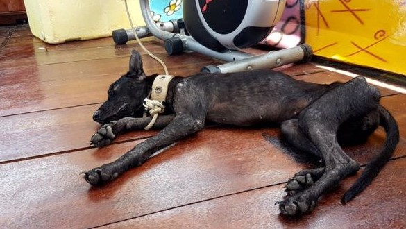 David Foster was on a river trip when he discovered the abandoned, hungry puppy on the Amazon rainforest island. “All I could see as she came racing down the shore was this skeleton body,” he explained.