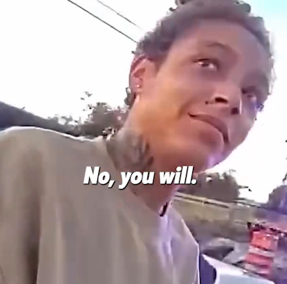The exchange quickly escalated as the officer ordered the driver to step to the front of the car. The driver expressed discomfort and hesitated, prompting the officer to physically attempt to control the situation. During the encounter, the driver challenged the officer’s assumptions regarding her gender identity, asking, “How do you know what I identify as?”