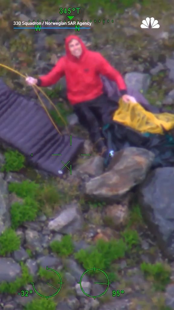 After nearly a week with no sign of him, Norway’s elite 330 Squadron Search and Rescue team spotted Alec from the air. A dramatic video shows him in a red jacket, frantically waving ropes and signaling for help. Within moments, he was hoisted to safety — battered, dehydrated, but alive.